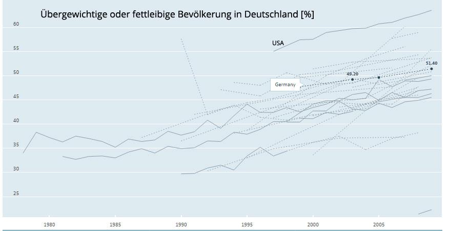 Seit den 80er Jahren haben wir einen massiven Zuwachs an Übergewicht und Fettleibigkeit in der westlichen Welt. Heute sind in Deutschland schon mehr als 50% übergewichtig oder fettleibig.