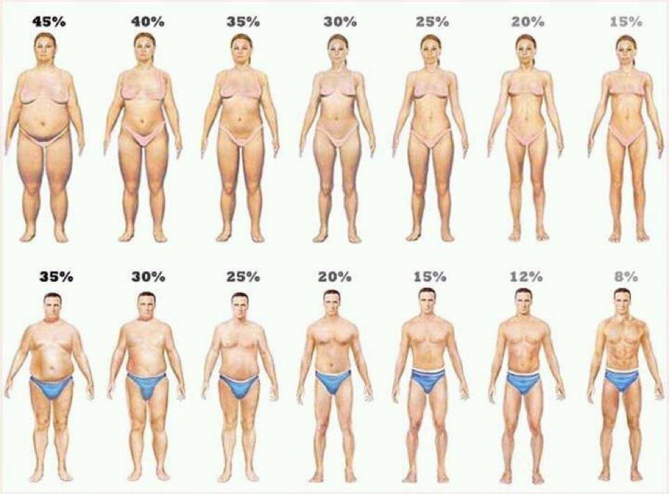 So sehen unterschiedliche Körperfettanteile bei Männern und Frauen aus: